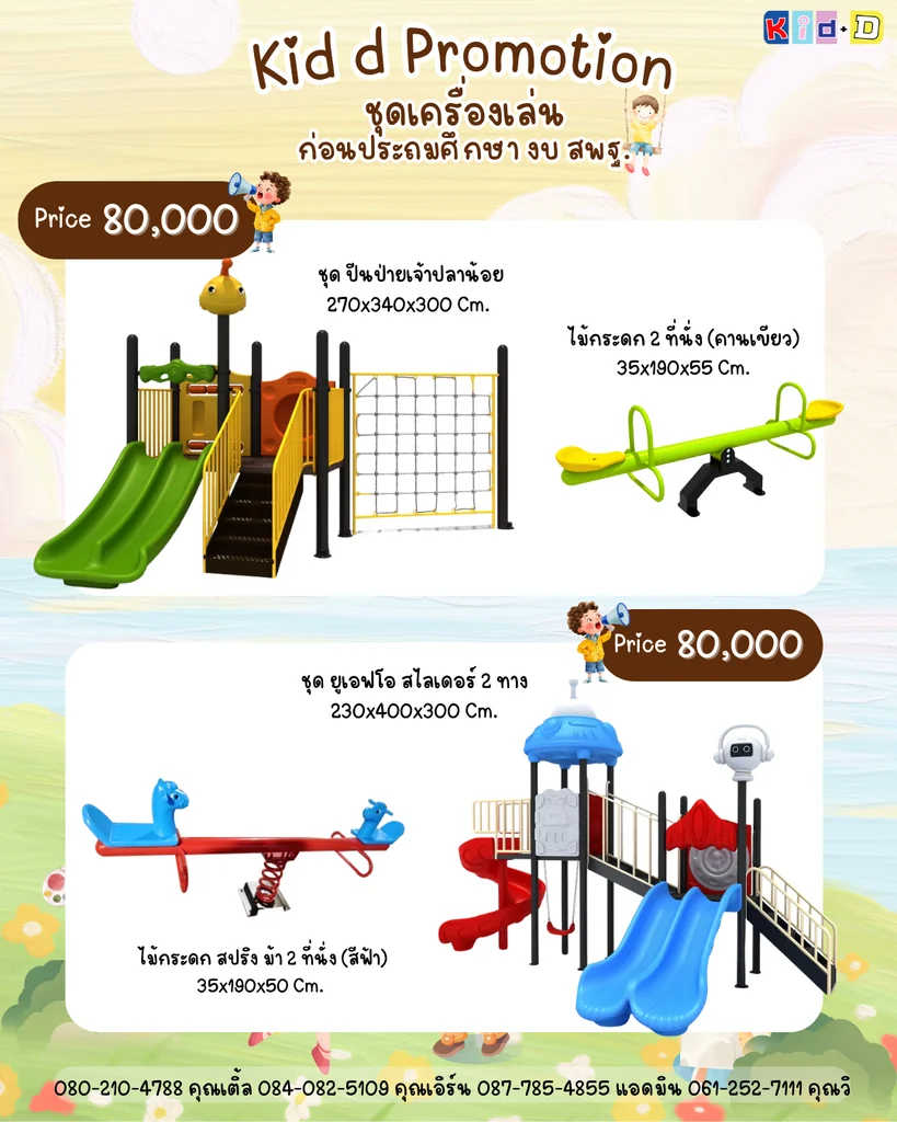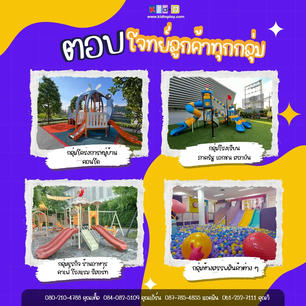 จำหน่ายเครื่องเล่นสนาม สนามเด็กเล่นกลางแจ้ง เครื่องเล่นสวนน้ำ สไลเดอร์ ชิงช้า เครื่องเล่นปีนป่าย ห้องบอล บ้านของเล่น เครื่องออกกำลังกายสนาม ของเล่นนุ่มนิ่ม ของเล่นไม้ พื้นยาง epdm พื้นกันกระแทก ของเล่นสนามเด็กเล่นและอุปกรณ์ของใช้ต่าง ๆ ที่เกี่ยวข้องกับเด็ก สินค้าคุณภาพสูง ได้มาตรฐาน ทั้ง EN1176 และ ASTM ผ่านการพัฒนาและตรวจสอบว่ามีความเหมาะสมกับเด็ก สามารถใช้งานได้อย่างปลอดภัย